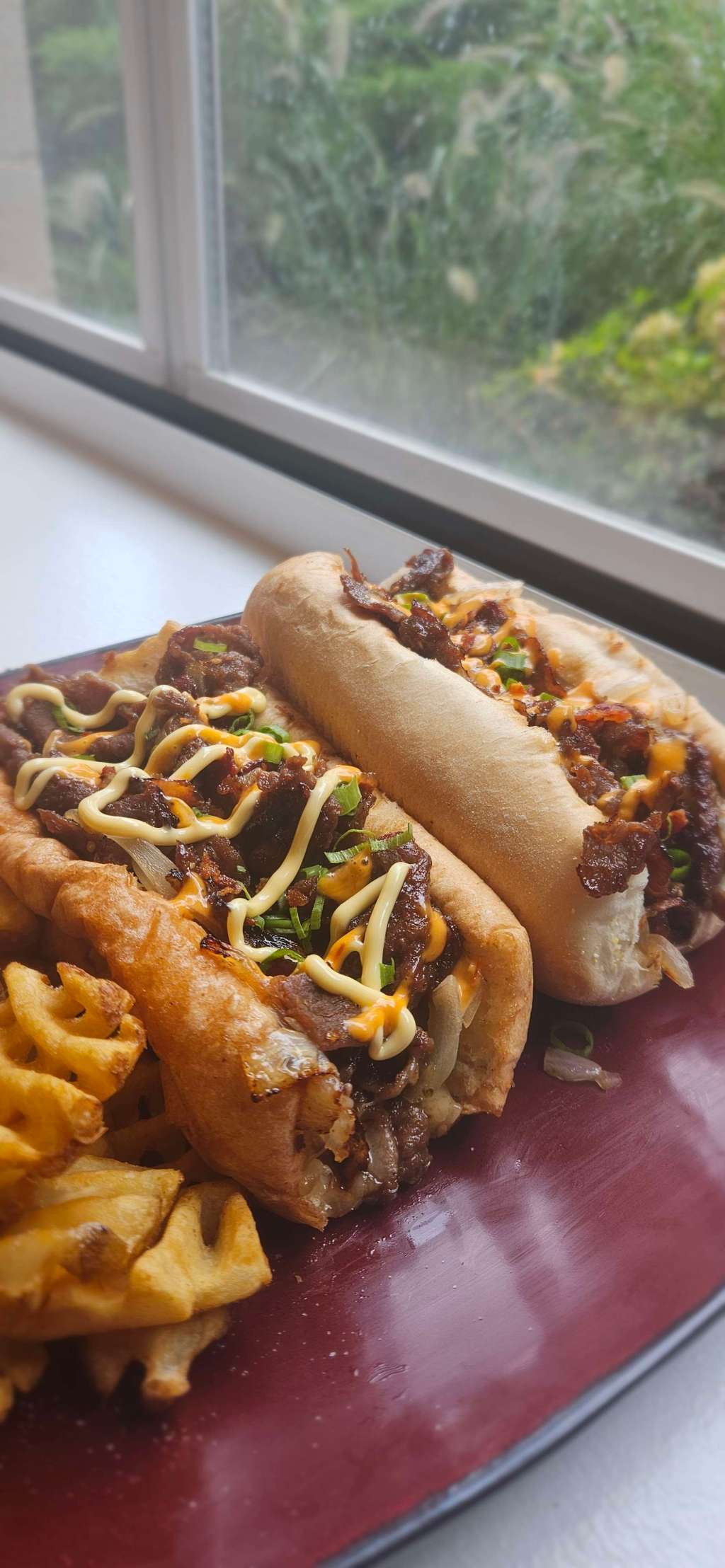 - Step 7: Garnish your bulgogi cheese steak with more bacon bits, green onions, sauces, etc., and serve! That’s the new and improved cheesesteak, and I hope you enjoy!